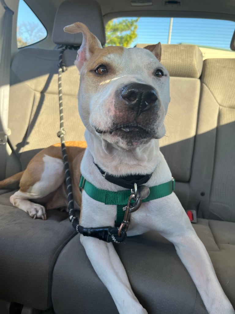 At that exact moment, five lanes on a busy street were completely open and there’s PetSmart, beckoning me: “Come now, we’re open for just this type of moment.” I crossed all 5 lanes with no problem, bought apple treats at the counter, and drove with purpose to the shelter.